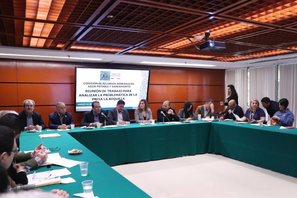 La Comisión de Recursos Hidráulicos, Agua Potable y Saneamiento, presidida por el diputado Feliciano Flores Anguiano (Morena), se reunió con productores agrícolas de Chihuahua y Tamaulipas, quienes expusieron la situación que se vive en la presa La Boquilla, ubicada en el cauce del Río Conchos, municipio de San Francisco de Conchos, Chihuahua, por el incumplimiento del Tratado Internacional de Aguas.